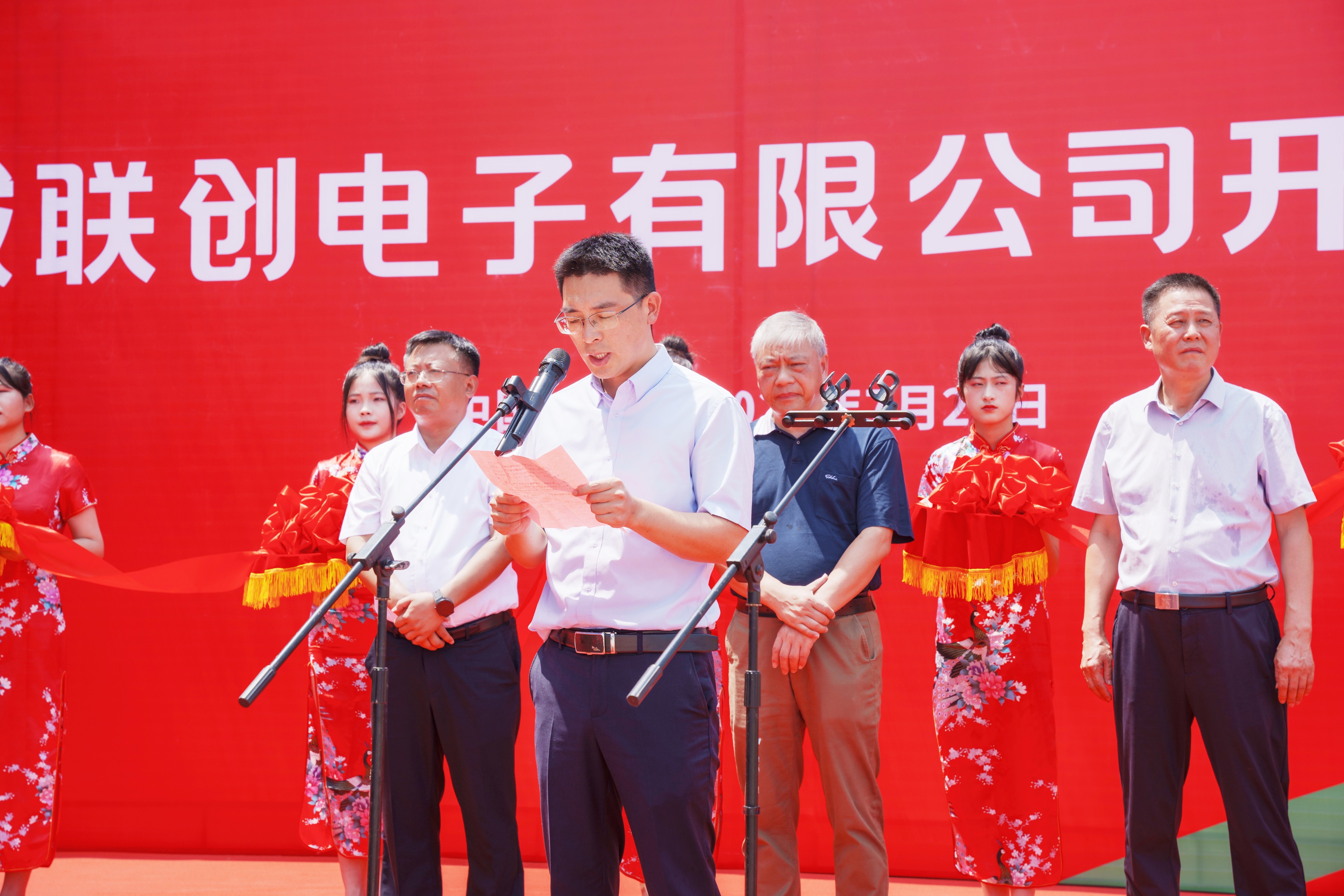 7月25日,桐城联创电子有限公司开工仪式在安徽省安庆市桐城市经济开发区顺利举行。桐城市委书记章周中,市委副书记、市长刘存磊等莅临活动现场,YABO.COM亚搏董事长曾吉勇,副总裁胡君剑、汪涛等出席活动。开工仪式由桐城市委常委、经开区党工委书记、管委会主任刘刚主持。